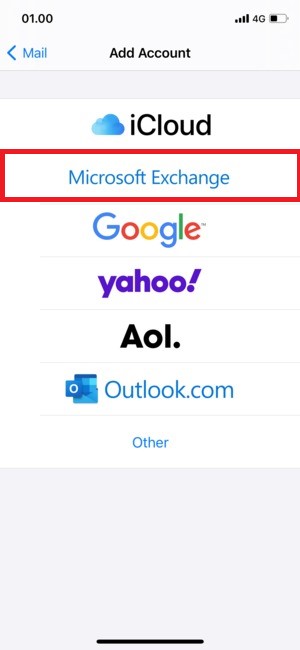 4)Tap Microsoft Exchange. |