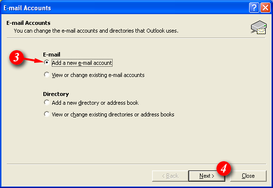 | 3)Place a dot next to 'Add a new e-mail account'. | ||||