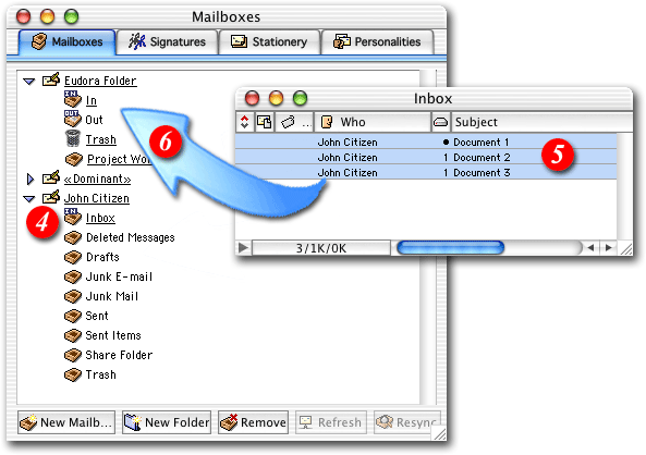| 6)Drag the messages to the appropriate folder in your local folders group |