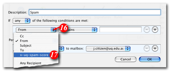 Your mail filter should now be in place. You should find that any filtered junk mail has been filtered out into the "Junk Mail" folder. The spam filter by default defines anything with a "spam score" of 4 or more as probably spam. You can personalise the filtering rules to be more or less restrictive by increasing or decreasing the number of asterisks after 'X-SpamDetect:'.For example, if you wanted to consider anything with a score of 3 or more to be spam, the rule would look like: 'X-SpamDetect: ***'. Decreasing the number of asterisks will result in Mac Mail classifying more e-mails as spam. You may need to check your spam folder more carefully for non-spam e-mails that might have been classified as spam. If you wanted to rate anything with a score of 8 or greater as spam, the rule would look like: 'X-SpamDetect: ********'. Increasing the number of asterisks may result in fewer filtered e-mails being classified as spam and more potential spam staying in your Inbox.