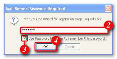 Once Mozilla is setup you will need to authenticate to the UQ Secure SMTP server.
